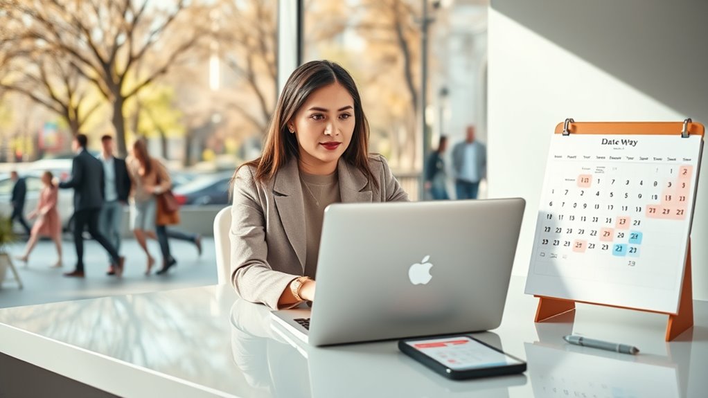Balancing career ambitions with an active dating life requires smart planning and emotional resilience. Prioritize your tasks, set clear boundaries, and schedule dedicated time for both work and personal activities like date nights. Stay flexible and accept that perfect balance isn’t always possible, so open communication becomes essential. Managing stress and focusing on self-care help you stay grounded amid busy days. Want practical tips to make it work smoothly? Keep exploring for expert advice.