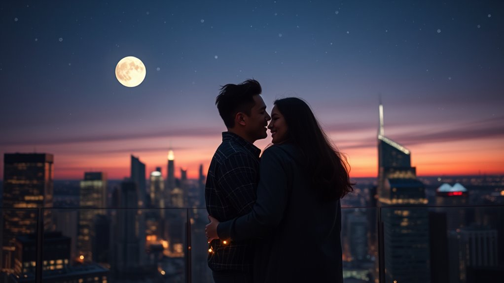 Futuristic settings in romance movies often explore cybernetic love and virtual intimacy, making connections feel more complex and layered. You’ll see characters steering through digital worlds, where emotions are intensified through technology. These films challenge traditional ideas of romance, showing how love can thrive across virtual boundaries and even with artificial beings. As a viewer, you’re drawn into stories that question what real intimacy means in a tech-driven future.