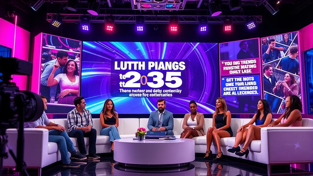 In 2025, you’ll find reality dating shows featuring innovative formats, diverse casting, and high-quality production that aims to create authentic connections. However, industry controversies around favoritism, ethical concerns, and transparency remain in the spotlight. Producers face pressure to balance entertainment with responsible storytelling, often using advanced technology to enhance viewer engagement. If you want to discover the latest trends and how these shows are tackling industry challenges, there’s more to explore ahead.