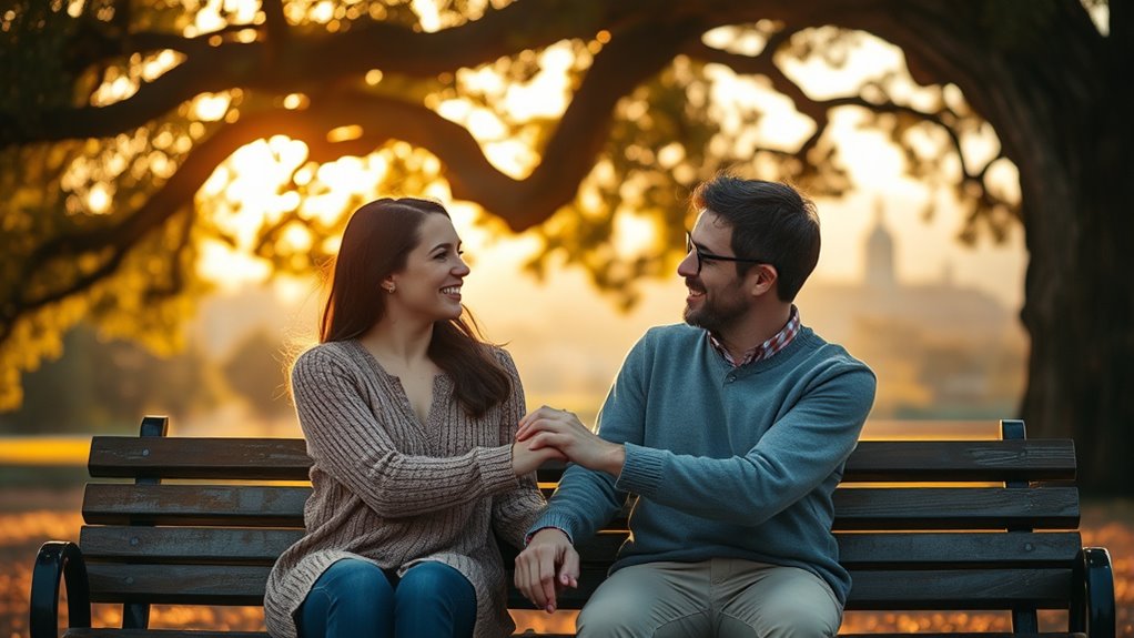 Heartfelt expressions in movies often reveal vulnerability, showing how love can make us feel exposed yet safe. When characters open up about their deepest desires or fears, they create a sense of intimacy that feels genuine. These dialogues remind you that love involves both strength and fragility and that sharing your true feelings—no matter how imperfect—can forge stronger bonds. Watching these exchanges can inspire you to be more open and honest with someone you care about, knowing that authentic love isn’t about perfection but about connection.