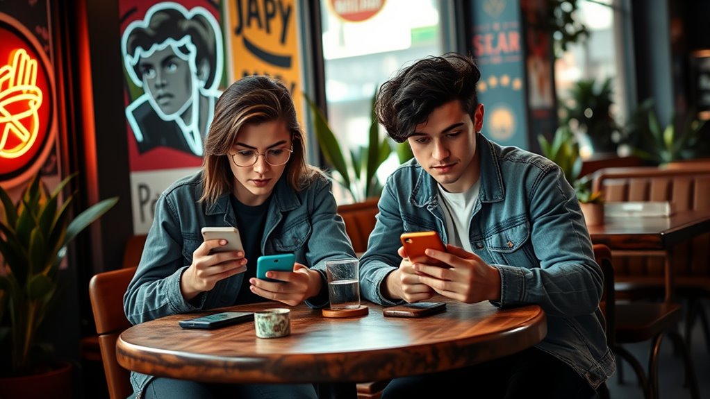 In a world where social media constantly bombards you with glimpses of others’ exciting lives, it’s easy to feel overwhelmed by FOMO and hesitant about rushing into relationships. You might find yourself scrolling endlessly, comparing your experiences to curated snapshots, which can make you question whether you’re missing out or falling behind. To navigate this, establishing clear digital boundaries becomes essential. Limiting your screen time, muting notifications, or even taking breaks from social platforms help create space for genuine self-reflection and reduce the constant pressure to keep up. When you set these boundaries, you regain control over how much influence social media has over your emotions, making room for more meaningful interactions in real life.