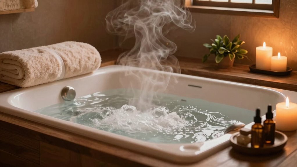 Foot spas may not be suitable for pregnant women or individuals with certain health restrictions. Pregnancy safety is a priority, so it’s best to consult your healthcare provider before using a foot spa, especially with heat and bubbles. Some health restrictions, like circulation issues or skin conditions, could be worsened by spa treatments. Always check with a medical professional to guarantee your comfort and safety before enjoying a foot spa.