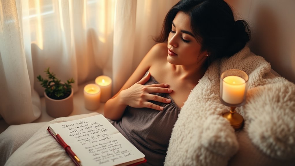 Practicing self-compassion can markedly improve your relationships and well-being. Remember, nearly 70% of people-pleasers report feeling more anxious and less fulfilled in love when neglecting their own needs. By committing to these exercises, you’re taking an essential step toward healthier boundaries and self-love. Embrace kindness toward yourself, and you’ll find that love becomes more genuine and balanced—for both you and your partner. Start today, and watch your confidence grow.