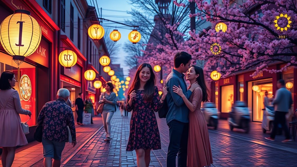 You’ll find love peaks during seasonal love peaks and romantic month forecasts, so pay attention to those times. Aries, for example, might experience romance in spring, while Cancer could find love waves during summer. Scorpio, in fall, may see a surge, and winter could bring unexpected connections for Aquarius. Mark these months on your calendar and stay open—these periods are prime for love opportunities tailored to your zodiac influence.