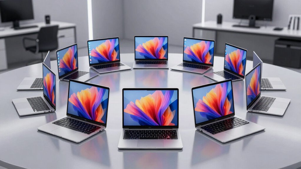 Choosing a 2TB MacBook Air that can keep up with demanding tasks hinges on its processing power. I look for a powerful processor, like the Apple M4 chip with a 10-core CPU, to handle multitasking and intensive apps smoothly. Support for hardware-accelerated video encoding and decoding, such as ProRes and AV1, is essential for content creation and editing. Sufficient RAM—ideally 16GB or 24GB—ensures large files and multiple applications run seamlessly without lag. I also consider AI accelerators or Neural Engines, which boost processing speed for machine learning tasks. Ultimately, a fast SSD, like a 512GB model, is vital to prevent data bottlenecks during large data transfers. All these factors combine to meet the heavy processing demands of power users.