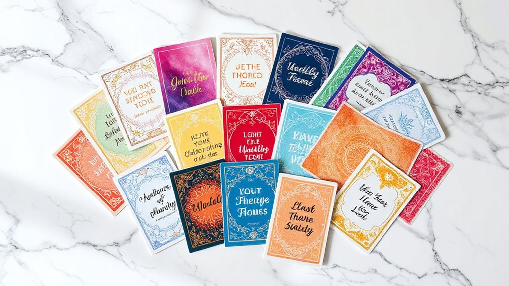 The visual design of affirmation card decks plays a crucial role in how effectively they inspire and motivate. Attractive, cohesive visuals aligned with the deck’s purpose can considerably enhance user engagement. Bright colors and calming imagery boost motivation and evoke positive emotions during use. Clear, legible typography ensures affirmations are easy to read at a glance, making the experience smooth and uplifting. Incorporating illustrations or artwork that complement the messages helps create a memorable and enjoyable interaction. Additionally, the overall aesthetic should reflect the target audience’s preferences and support the deck’s theme—whether empowerment, relaxation, or mindfulness. When the design resonates visually, it naturally encourages regular use and deepens the connection with the affirmations, amplifying their impact.