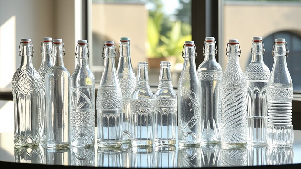 Crystal water bottles come in a variety of sizes, typically ranging from 14oz to 19oz, so it’s important to pick one that suits your hydration needs. If I’m heading out for a hike or a long workday, I prefer a larger bottle to ensure I stay hydrated without constant refills. On the other hand, smaller bottles are more portable and fit easily into bags or cup holders, making them ideal for quick trips or workouts. I also consider the bottle’s dimensions and weight—lighter and compact models are more comfortable for active use. Matching the capacity to my daily routine helps me stay hydrated without carrying unnecessary bulk. Ultimately, choosing the right size depends on your activity level and how much water you typically need throughout the day.