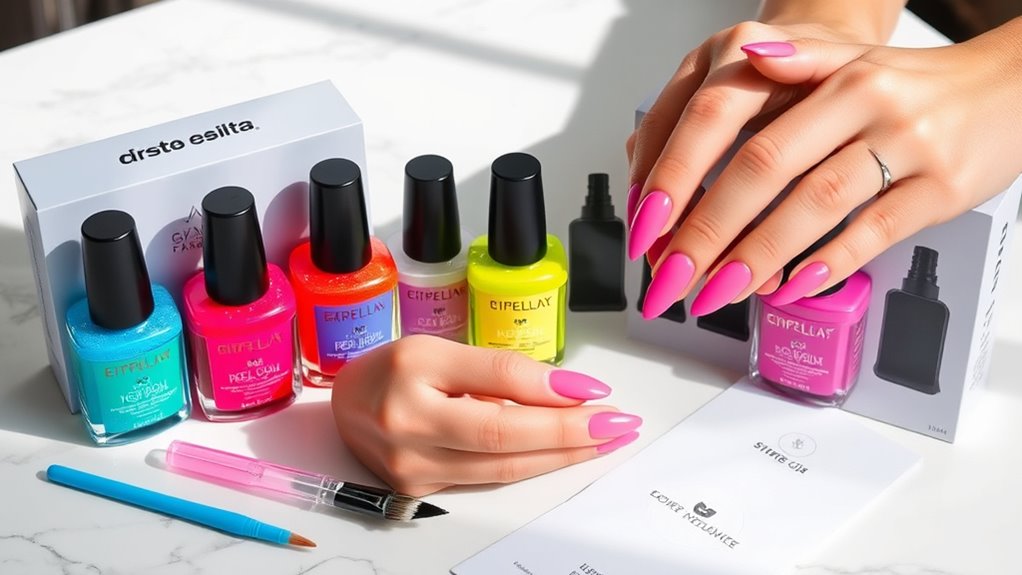 The durability of gel nails largely depends on the quality of the gel formula and how well you apply it. Using a good base coat and top coat, and curing each layer thoroughly, can help your manicure last 2-3 weeks. Proper nail prep—buffing and cleaning—improves adhesion and reduces peeling, boosting longevity. Following the recommended curing times for your lamp ensures maximum resistance to chipping. Regular maintenance, like avoiding harsh chemicals and applying a fresh top coat every few days, also extends your gel’s lifespan. When choosing a kit, look for high-quality gels and clear instructions on application and curing. Remember, patience and proper technique are key to achieving durable, beautiful results that last.