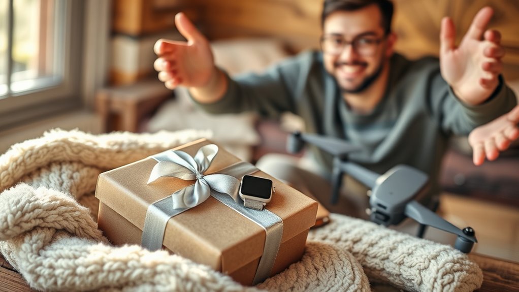 Think of choosing gifts like tuning a musical instrument; each string must align with his passions. I start by observing what excites him—maybe it’s a hobby or a favorite sport. I then look for items that enhance or complement these interests, like specialized gear or experiences. This personal touch shows I genuinely understand him, making the gift meaningful and sure to bring a smile.
