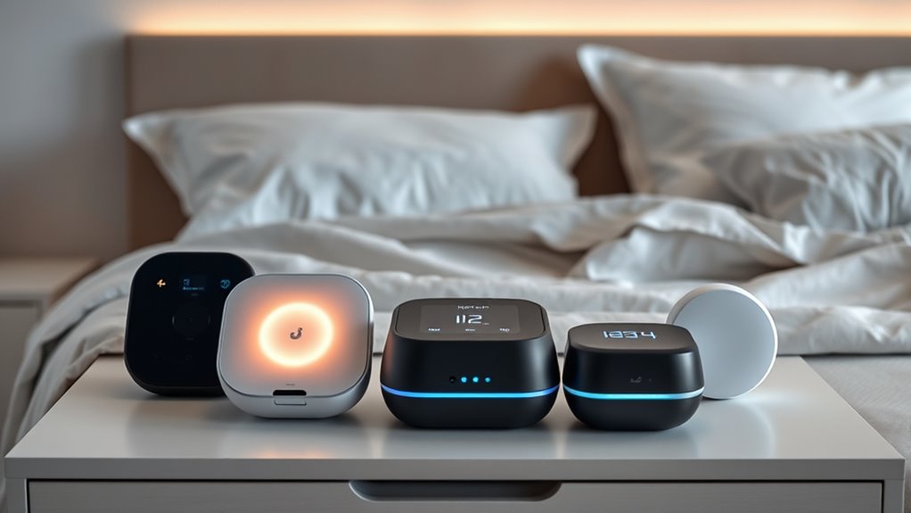 Beyond just selecting a device that fits your budget, it’s important to contemplate how additional sleep tools can boost your overall sleep quality. Items like white noise machines, blackout curtains, and sleep masks can make a significant difference by creating a more consistent and soothing sleep environment. Combining multiple aids can help tackle specific challenges, such as noise sensitivity or light disruptions, leading to more restful nights. Look for sleep tools with adjustable settings so you can customize your comfort. Compatibility with your smart home devices also simplifies managing your sleep environment, allowing automation and seamless control. Using supplementary tools alongside your sleep device reinforces healthy habits and enhances sleep quality, making your nightly routine more effective and restful.