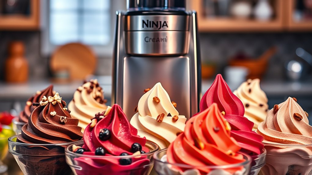 I’ve tested some amazing Ninja Creami Deluxe recipes, and the top ones for 2025 include creamy ice creams, flavorful sorbets, and protein-packed bowls, all from popular cookbooks. These recipes are easy to follow and customizable, perfect for both beginners and seasoned dessert lovers. If you’re curious about the best flavor combinations, textures, and tips for success, stick around—there’s plenty more inspired ideas and reviews you won’t want to miss.