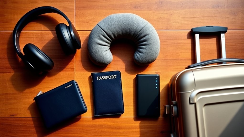 When choosing travel accessories, I focus on safety features that give me peace of mind. Look for locks on luggage, RFID-blocking pockets to protect personal info, and durable materials that withstand rough handling. Bright colors or reflective accents help you spot your bag easily. Anti-theft zippers and secure straps also add extra security, so you can relax and enjoy your trip without worries about theft or damage.